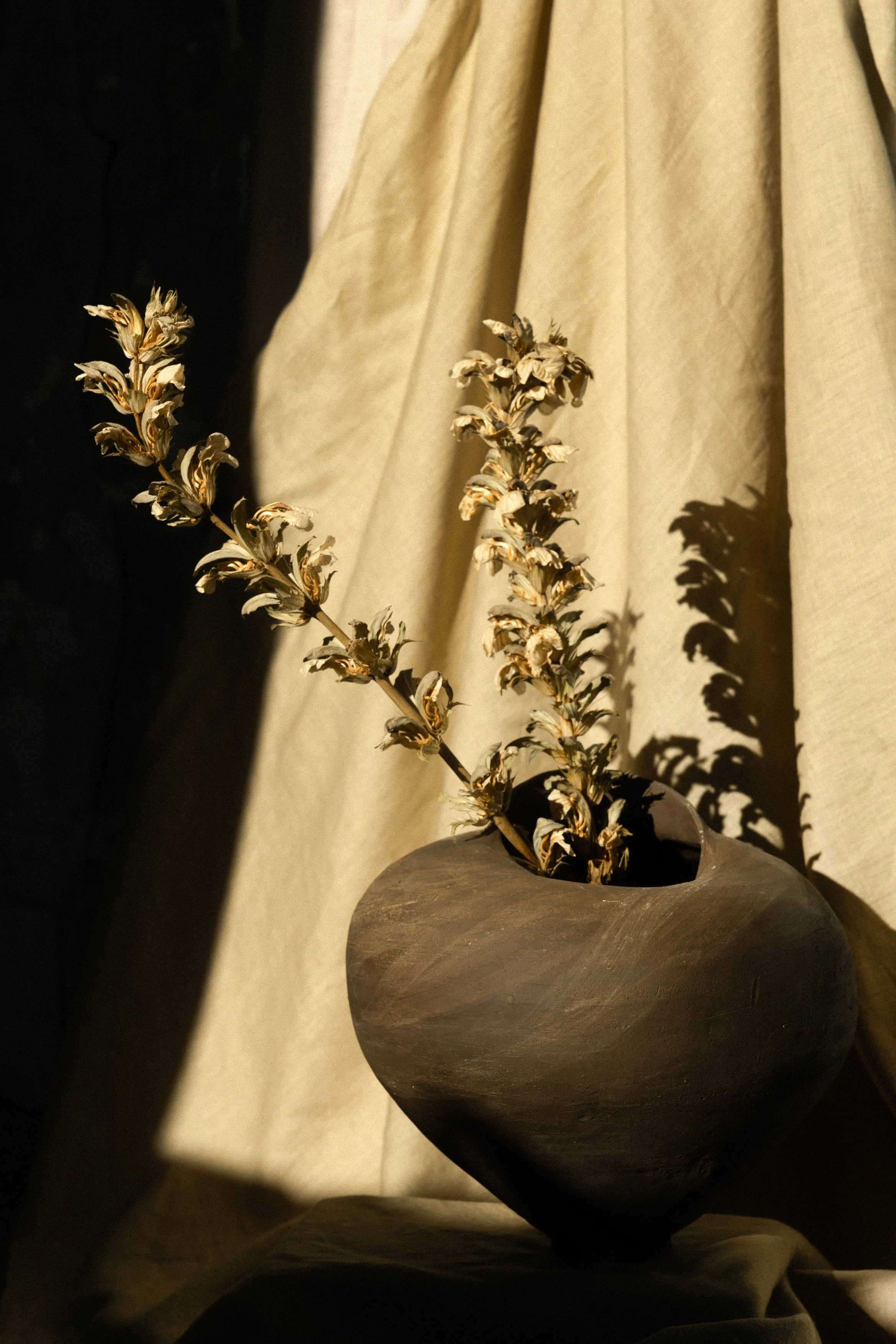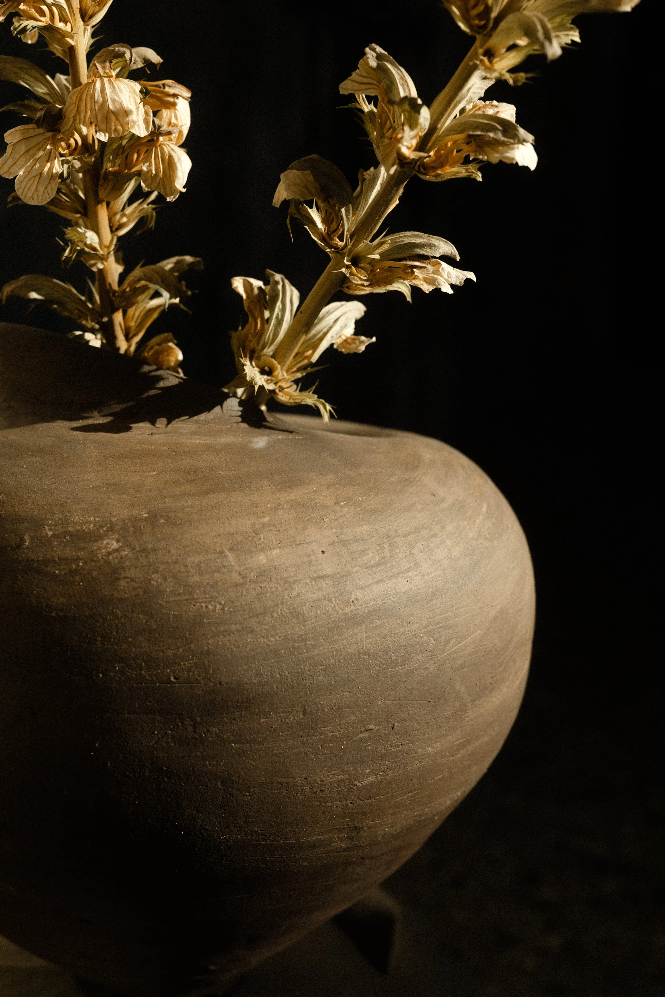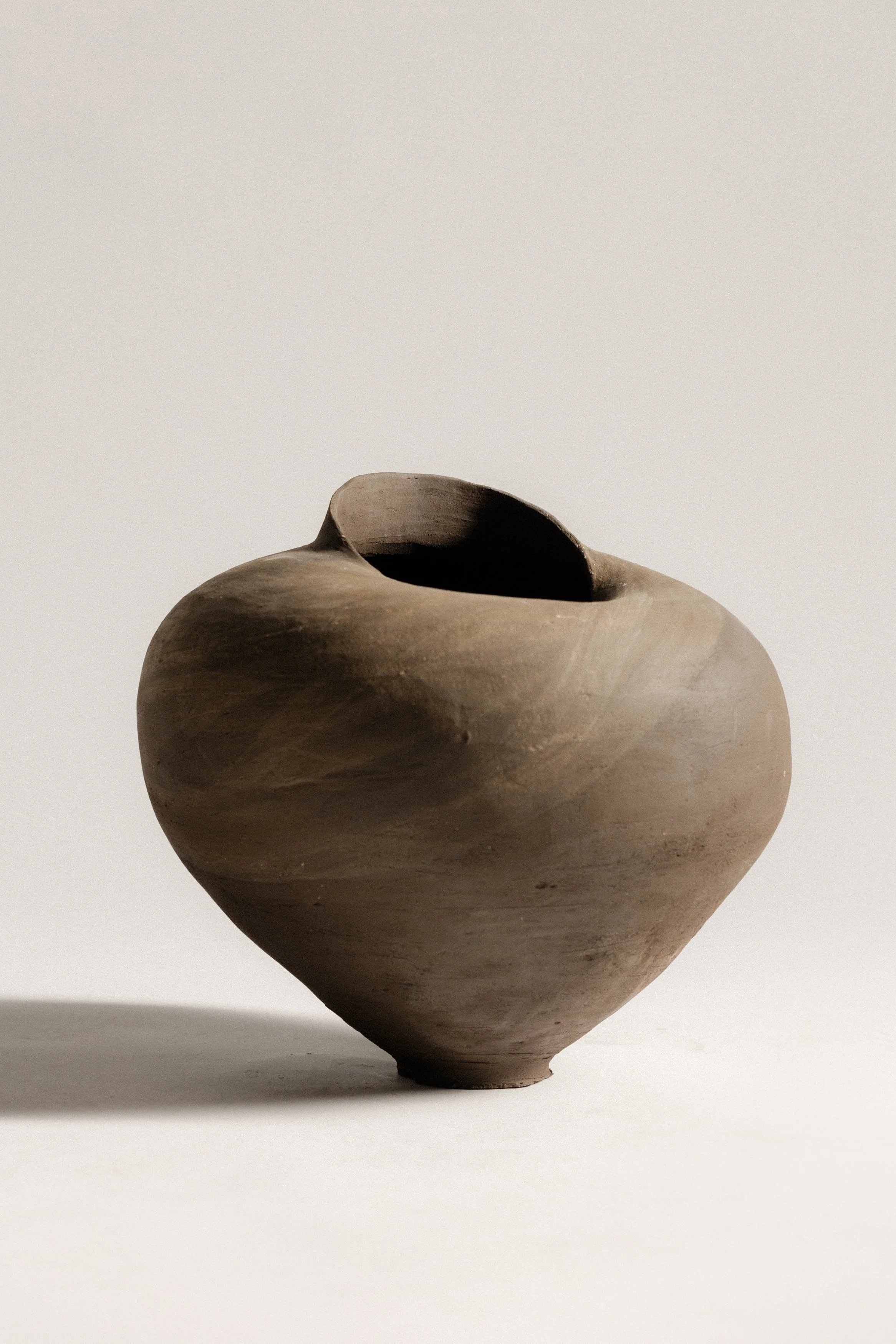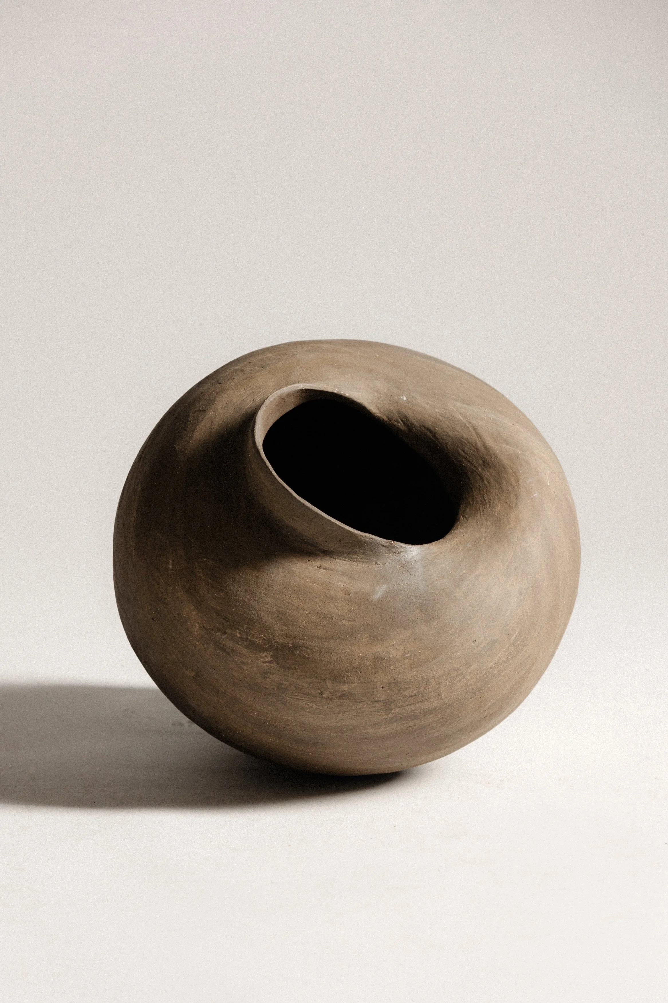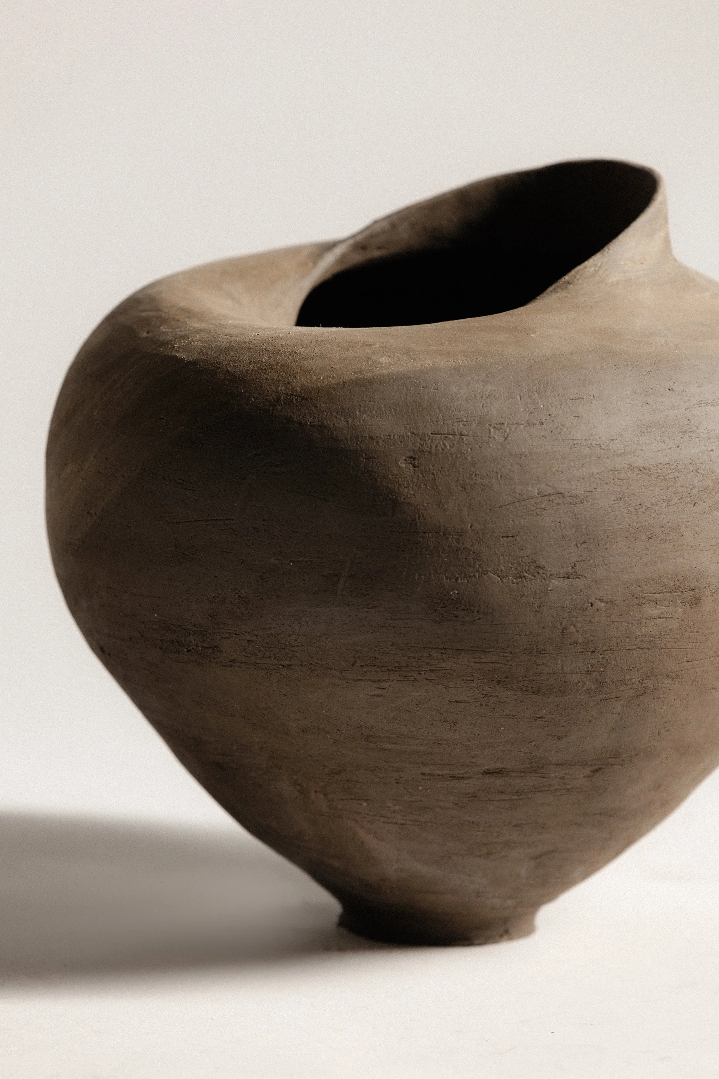 Coil-built in black stoneware, with raw finish, unglazed